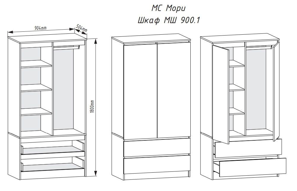 МОРИ МШ 900.1 Шкаф с 2-мя дв. и 2-мя ящ. (Белый)