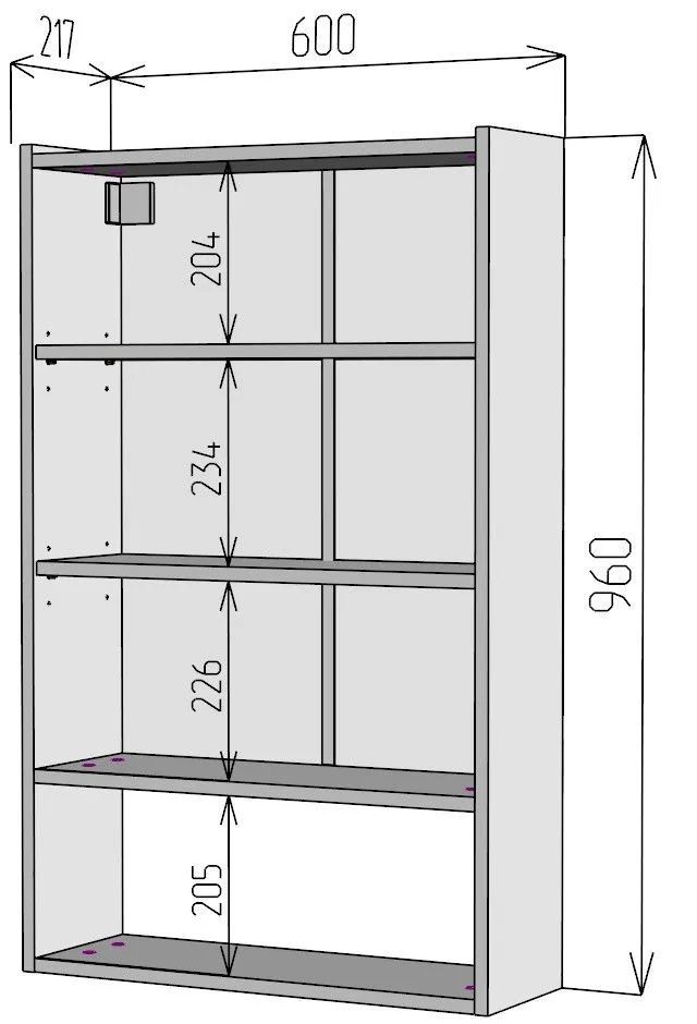 Размеры (Ш*В*Г)(мм): 600*960*217
